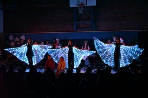 Die Sportgruppe der Mittelschule brachte den Saal mit Hilfe von Schwarzlicht zum Staunen, tolle Formationen und Bewegungsgeschick faszinierten das Publikum. Dann übernahmen die Gruppen Schauspiel und Chor die Bühne und präsentierten ein weihnachtliches Musical rund um den Zauber der Weihnacht. Hierbei waren ungefähr 50 SchülerInnen in verschiedenster Art und Weise beteiligt – ein großartiges Projekt! Der riesige Besucherandrang zeigte das große Interesse, die Begeisterung des Publikums war der Lohn für den Aufwand und beim Buffet des Elternvereins fand der Abend einen stimmungsvollen Ausklang!