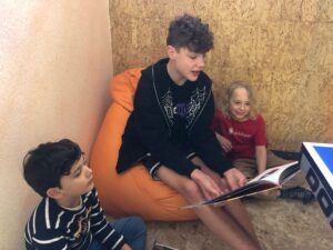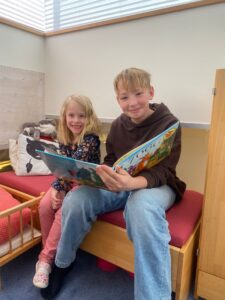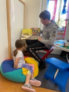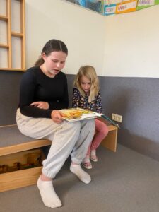 Danach besuchten die Viertklässler ihre „kleinen“ Nachbarn – die Kindergartenkinder und die Kinder der 1. und 2. Klasse Volksschule – und lasen ihnen vor.
