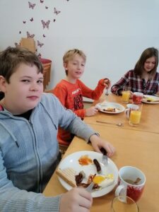 Wie ein typisches englisches Frühstück schmeckt, konnte die 3. Klasse ausprobieren. Mit sausages, baked beans, toast, tea with milk and eggs kann man gestärkt in den Tag gehen! Ob es auch allen geschmeckt hat …?