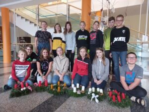 Um die Wartezeit zu verkürzen und uns auf die besinnliche Adventzeit einstimmen zu können, band heuer mit Hilfe von SILVIA HAHN, die dritte Klasse die Adventkränze für die Klassen und das Lehrerzimmer!