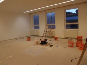 Momentan wird der große Raum neu ausgemalt. Dazu haben Schüler der 3a und einige Lehrerinnen alle Bücher und Regale gemeinsam mit dem Schulwart in einen anderen Raum zur Aufbewahrung gebracht. Viele Hände waren dafür nötig. Es werden Themenplätze eingerichtet; zum Beispiel eine Girl’s Corner und ein Wissens-Eck.