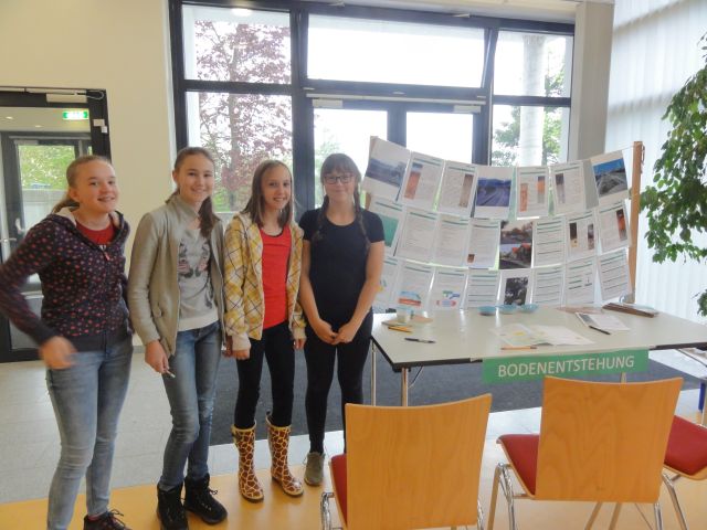 Zuerst beschäftigten sich die Schüler in kleinen Gruppen an unterschiedlichen Stationen wie Boden und Wasser oder Bodenlebewesen. Wegen des Regens konnten die Schüler der Gruppe Bodenlebewesen sogar draußen nach Regenwürmern graben. Die Wissensvermittlung durch Experimentieren und Analysieren der Versuche stand im Vordergrund. Dazwischen stärkte eine Jause und später das Mittagessen bevor es hinaus ging, um Bodenproben zu entnehmen. Der Wettergott legte extra für uns eine Regenpause ein, damit die Schüler lernen konnten welche Eigenschaften die Erde unter unseren Füßen hat und wie sich diese auf die Feldfrüchte und die zukünftige Ernte auswirkt. Ein Stallrundgang durfte natürlich auch nicht fehlen.