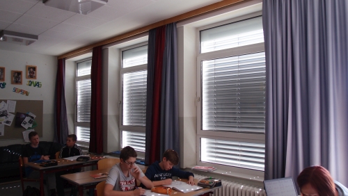 Aufgrund der Klimaerwärmung ist es im Herbst und Frühling in den Klassen oft so heiß gewesen, dass das Lernen und Lehren sehr erschwert war. Auf die Bitte des Direktors hin hat sich die Gemeinde sofort bereit erklärt, Beschattungen anbringen zu lassen. Die Arbeiten erfolgten in den Osterferien, der Schulwart hat schon im Vorfeld alle Kabelkanäle gelegt.