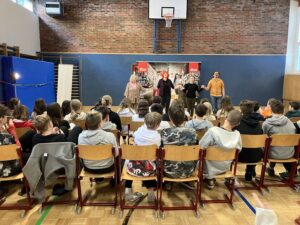 Die Schüler/innen wurden von den Schauspieler:innen interaktiv in das Stück einbezogen und zum Mitdenken und Mitmachen angeregt. Denn „Mobbing“ geht jeden an.